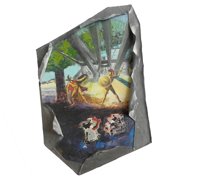 Serie di 6 lavori, olio e tecnica mista su legno e piombo.