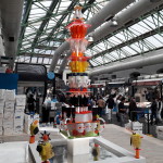 Opera realizzata per Il Mercato Esquilino su richiesta dell’Associazione dei commercianti   (CO.RI.Me.)  In occasione del Natale di Roma 2021 (ferro, legno, cartone, policarbonato, metacrilato, plastiche varie di scarto, viti,  fil di ferro, luci al led – 365x210x210)