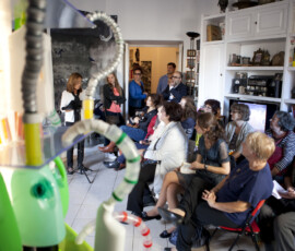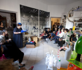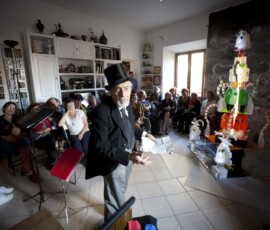 In occasione della XI Giornata del Contemporaneo organizzata da AMACI, è prevista l’apertura dello studio al pubblico con un ricco programma di eventi (musica, poesia, letture e brevi performance teatrali) che si terranno il giorno 11 ottobre dalle 16 alle 21.